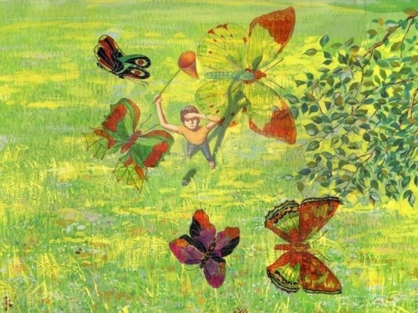 Поднята тема бережного отношения к природе. Мальчик поймал много бабочек, поместил их в душную закрытую банку и уснул. А во сне он стал пленником огромной бабочки, которая пронесла его в марлевом сачке над землей. Мальчик понял, что все живое должно быть свободным — и открыл крышку банки...