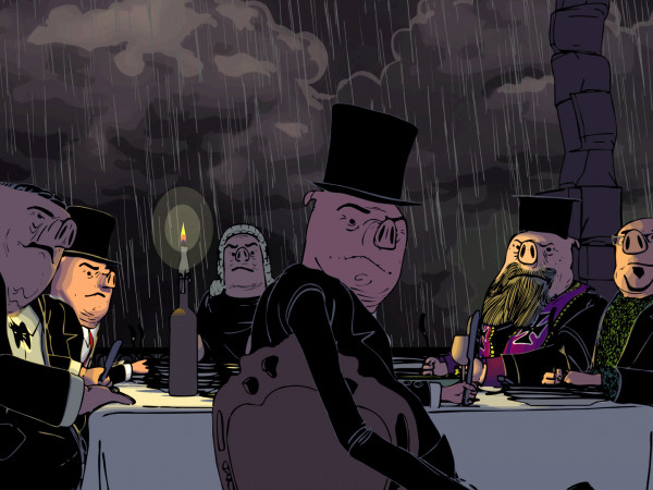 Ужин для избранных — аллегорическое описание нашего общества. Во время ужина система кормит некоторых людей, которые потребляют все ресурсы, в то время как остальные вынуждены довольствоваться объедками.