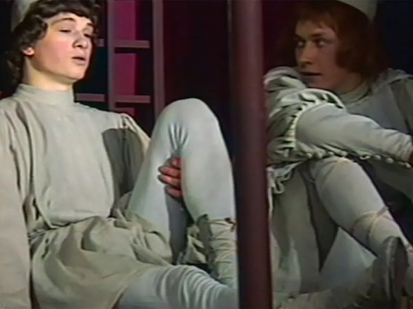 Одна из последних телевизионных работ А. Эфроса, в какой-то степени для него — экспериментальная. В качестве декораций перед нами металлические конструкции, на которых молодые актеры выполняют головокружительные подчас трюки.