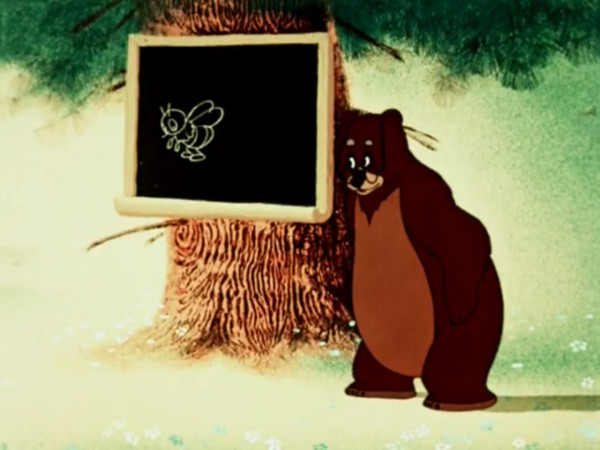 Медведь-учитель рассказывает медвежатам о пользе пчел и вреде, который они могут причинить медведям. Внезапно над полянкой появляется пчела. Медвежата, не дослушав урока, бросаются за ней в погоню.